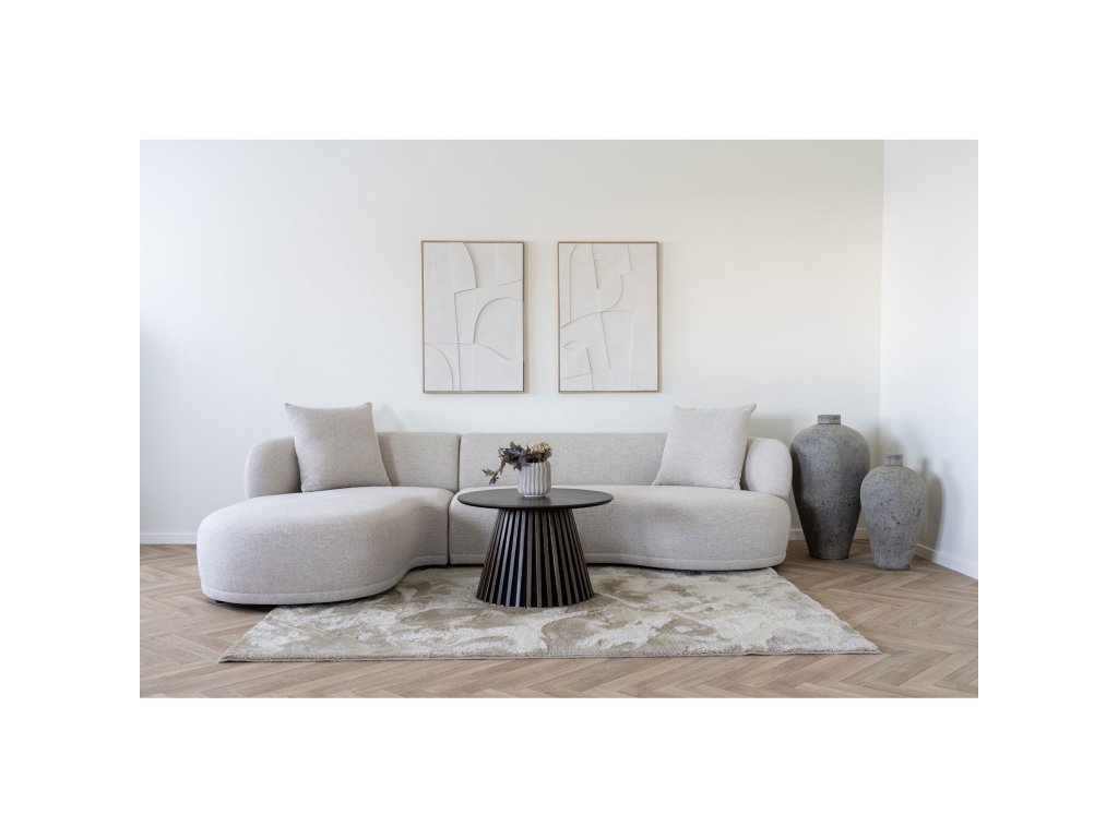 Kamenná pohovka ve tvaru U s otevřeným koncem, pravá strana, 4 polštáře, černé dřevěné nohy, Lido