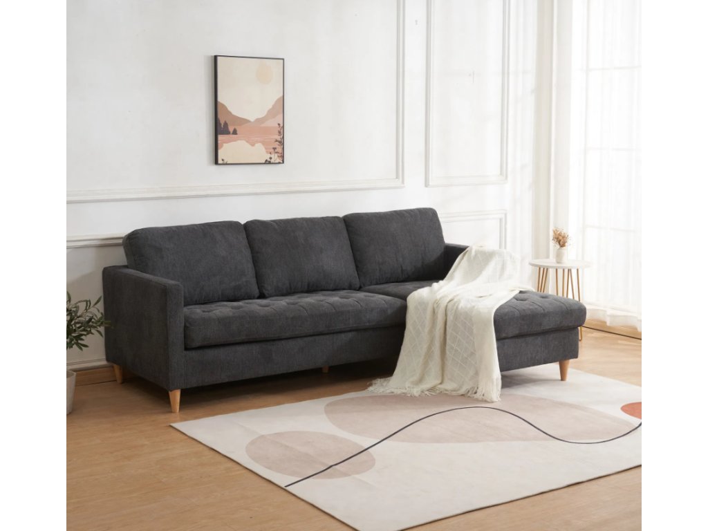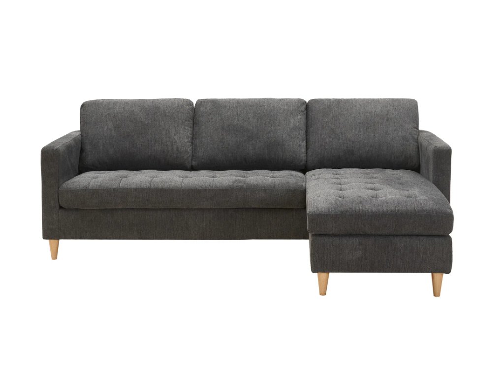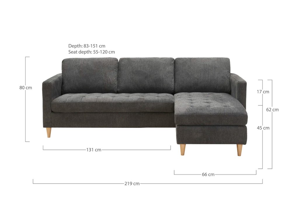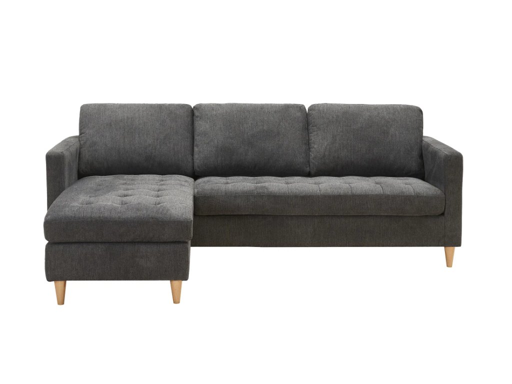 - Barva nohou: světlé dřevo, které dokonale ladí s tmavě šedým čalouněním