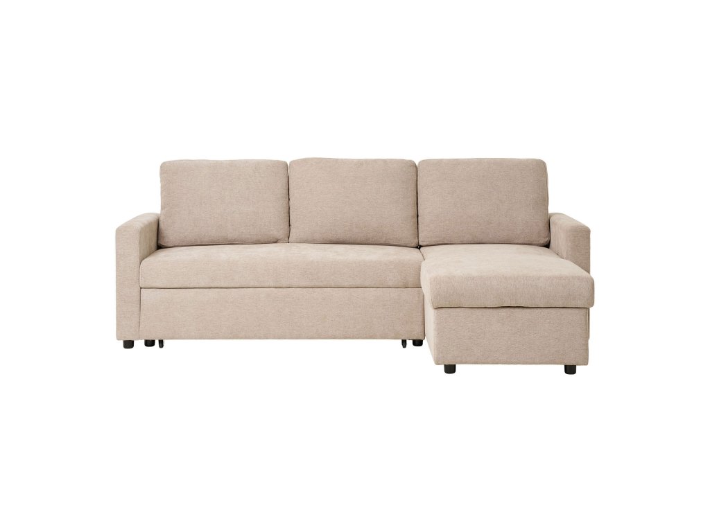Rozkládací pohovka Belfast v nadčasovém béžovém provedení kombinuje pohodlí, funkčnost a elegantní design. Díky snadnému rozložení se během chvilky promění v komfortní lůžko pro hosty a její praktický úložný prostor pojme lůžkoviny i sezónní textilie.