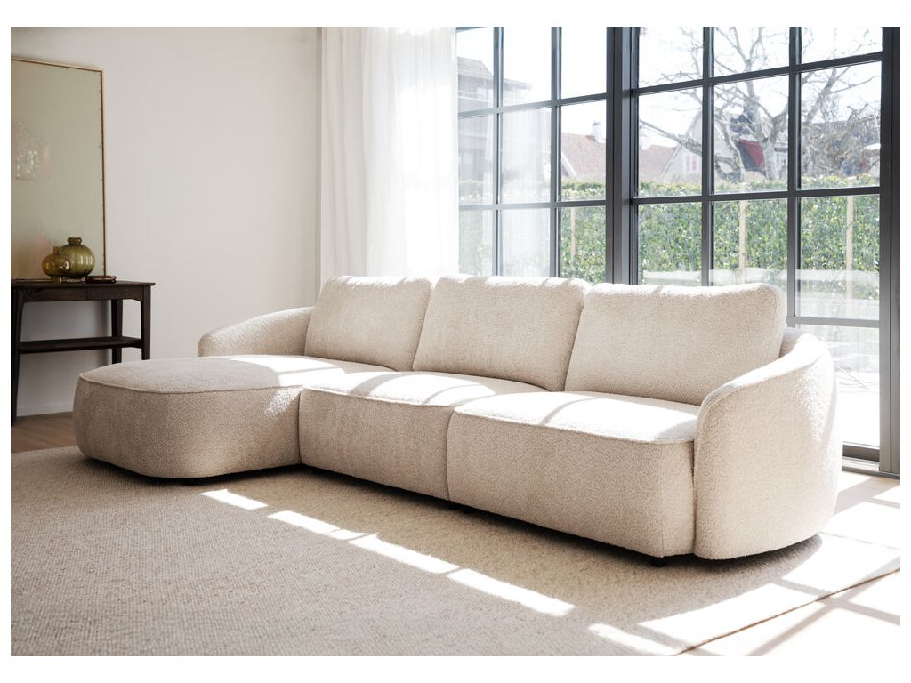 Béžová rohová 4místná pohovka s lenoškou, levý roh, 319 cm,Norris