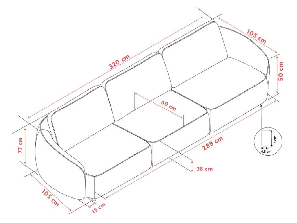 Pohovka Norris je navržena tak, aby se stala srdcem vašeho obývacího pokoje – místem, kde se snoubí styl, pohodlí a kvalita. Její velkorysá délka 319 cm poskytuje komfortní prostor až pro čtyři osoby, takže je ideální pro rodinné posezení i přátelská setkání.