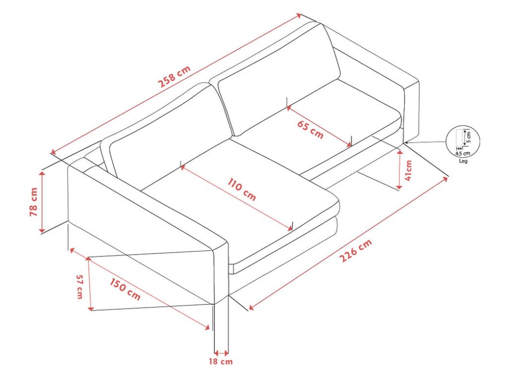 Praktická lenoška na pravé straně nabízí prostor pro relaxaci – ideální pro odpočinek s knihou, sledování filmu nebo víkendové lenošení. Pohovka poskytuje komfortní sezení pro celou rodinu a zároveň působí vzdušně díky čistým liniím a decentním tvarům.