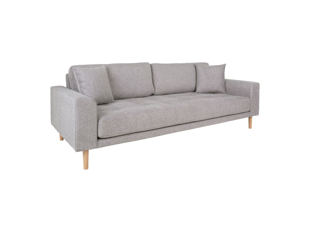 světlé šedá třímístná pohovka se 2 polštáři, nohy z přírodního dřeva, Lido