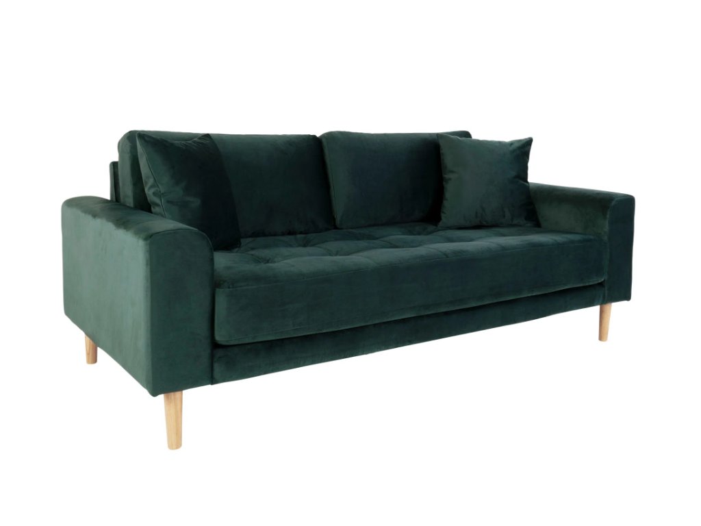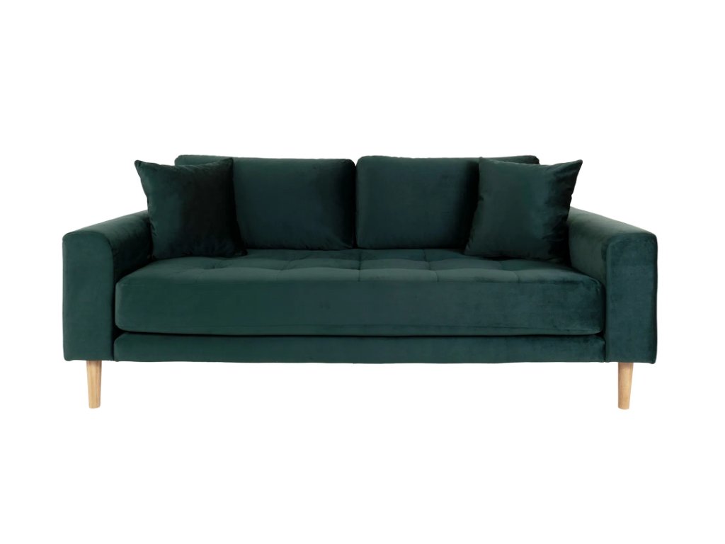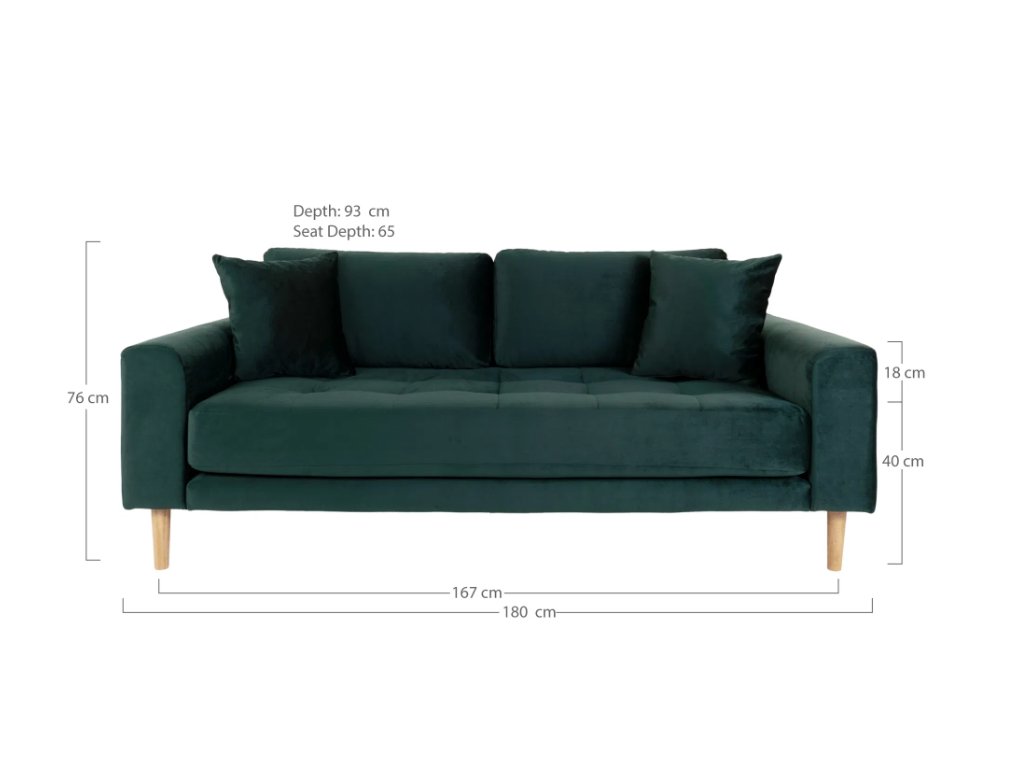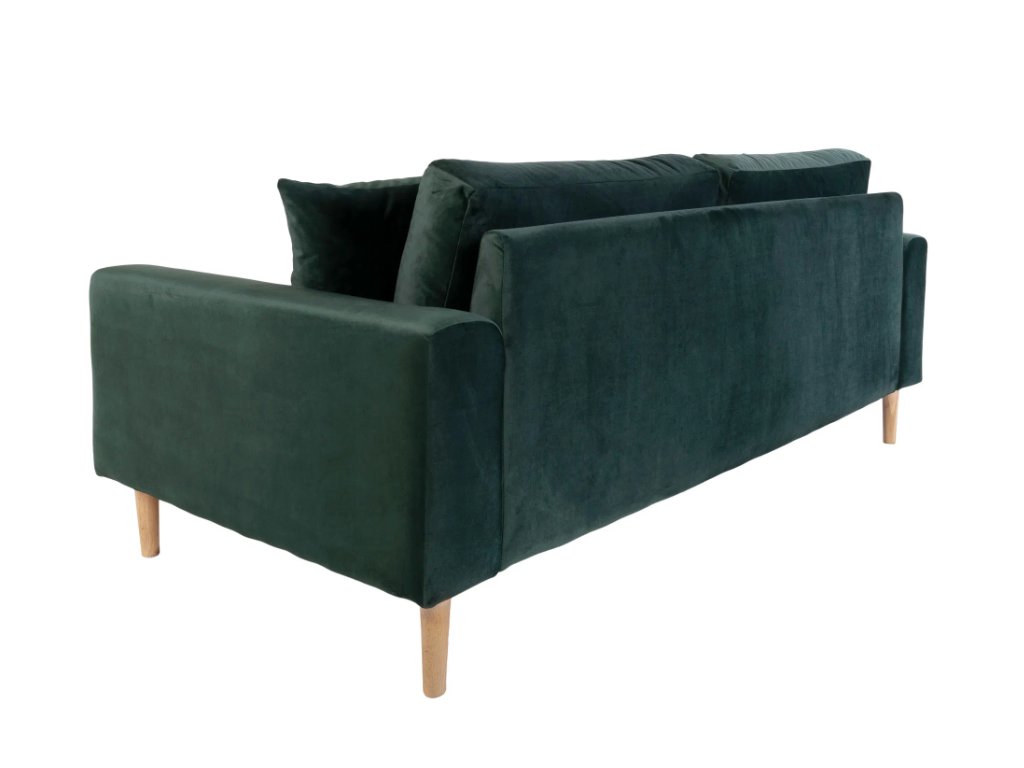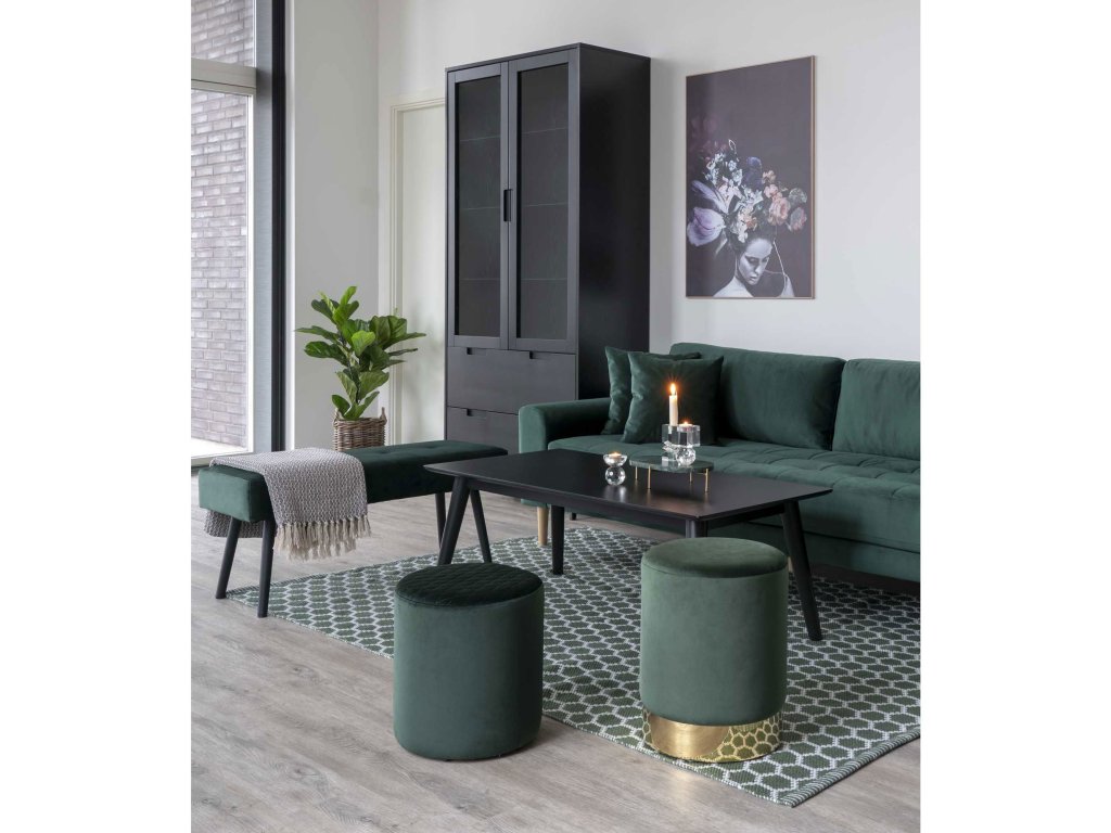 Tmavě zelená sametová pohovka Lido se hodí do moderních, glamour, art deco i přírodně laděných interiérů. Krásně vynikne v kombinaci se zlatými, mosaznými nebo černými doplňky, které zvýrazní její luxusní charakter. Ve spojení s dřevem a přírodními materiály naopak působí uklidňujícím dojmem. Je ideální volbou pro ty, kteří chtějí do prostoru vnést eleganci, hloubku a styl.