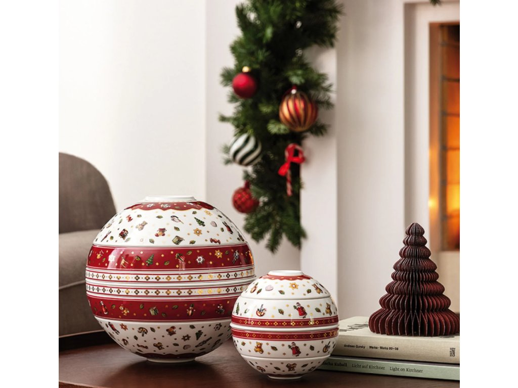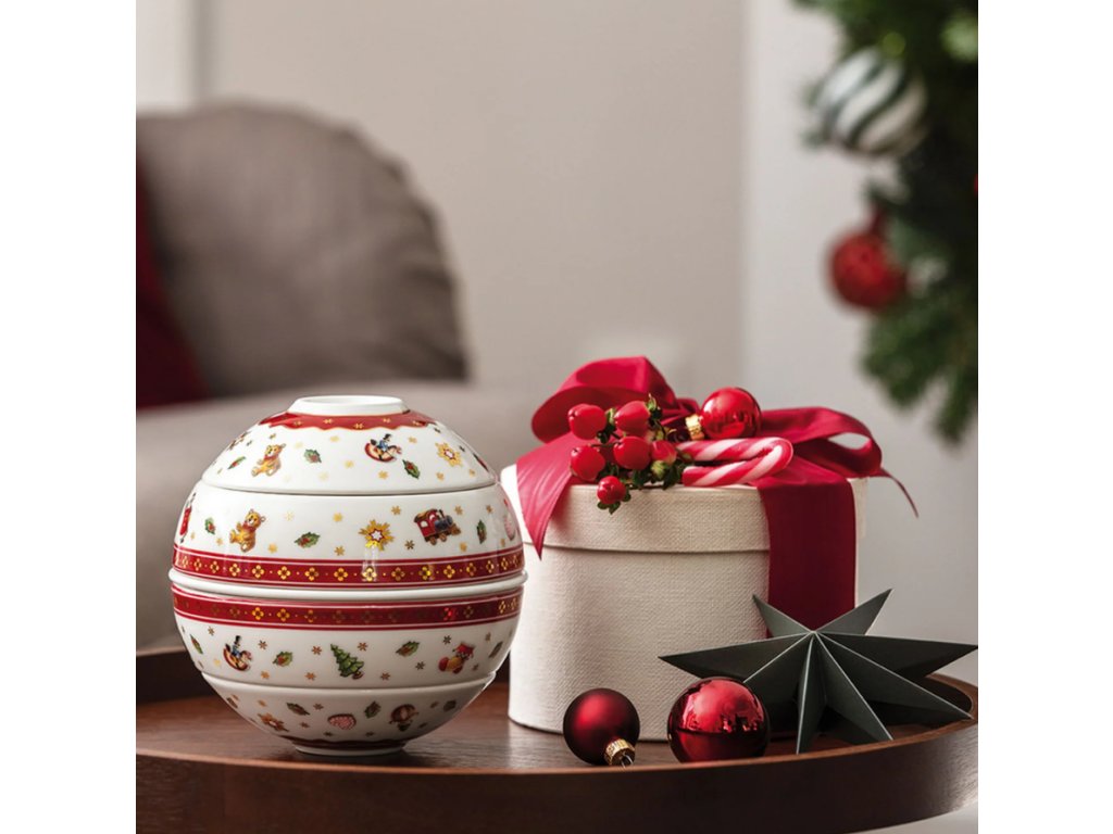 Novinkou roku 2024 je ikonická jídelní sada La petite Boule od německé značky Villeroy & Boch – designový objekt a funkční porcelán v jednom. Menší verze o průměru 14 cm přichází v nádherném ručně zdobeném vánočním provedení, které dokonale ladí s oblíbenou kolekcí Toy’s Delight.