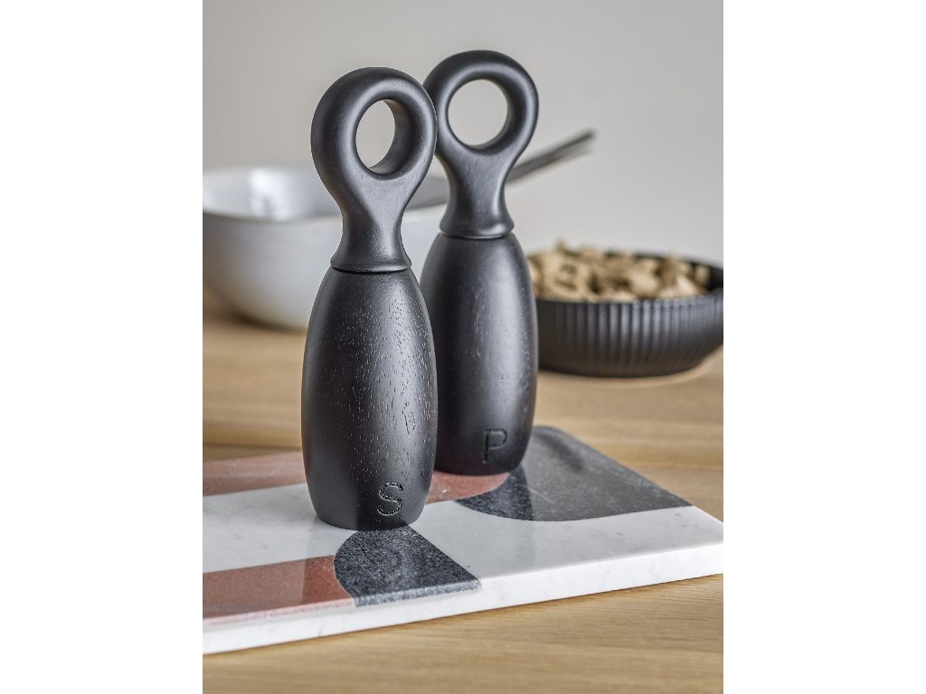Mlýnek na sůl a pepř Martim od Bloomingville se skládá ze dvou mlýnků – jednoho na sůl a druhého na pepř. Mlýnky jsou vyrobeny z černého kaučukovníku a mají velké kulaté rukojeti, které se snadno otáčejí. Mlýnek si můžete nechat na kuchyňské lince, kde vaříte, nebo si ho vezměte k jídelnímu stolu.Doplňkové parametry