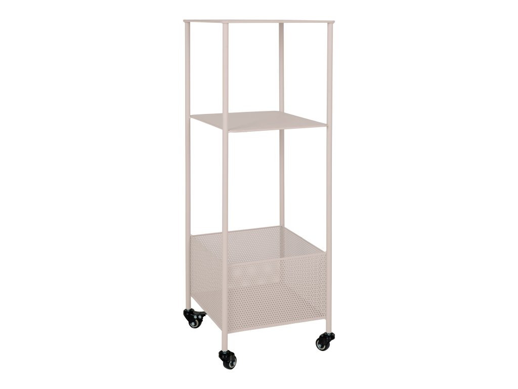 Kovový vozík Torres je praktický a stylový pomocník v pískové barvě. S rozměry 35x35x100 cm disponuje třemi pevnými policemi, díky nimž je ideální pro skladování nápojů, sklenic, kuchyňského náčiní nebo dekorací. Jeho industrial styl a odolná konstrukce ho činí vhodným do domácností, barů nebo kaváren, kde přináší funkčnost a přitom vypadá moderně.