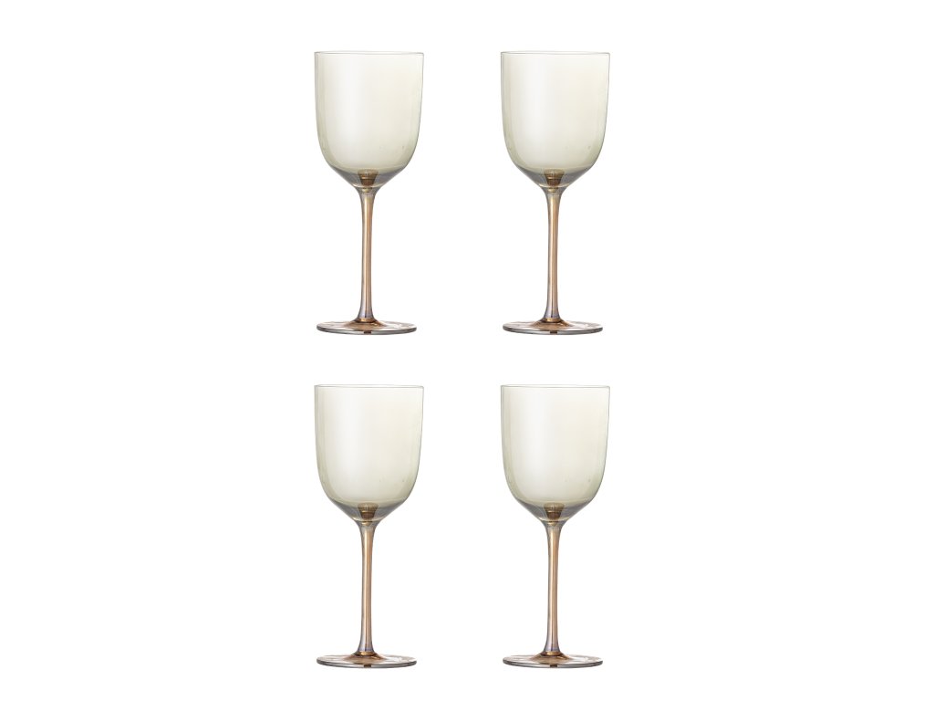 Sklenice na víno Aston od Bloomingville má bronzovou povrchovou úpravu s perleťovým okrajem, který krásně zachycuje světlo. Díky svému rafinovanému vzhledu je ideální jak pro servírování vína, tak i pro dekorativní prostírání. Sada obsahuje 4 sklenice.Doplňkové parametry