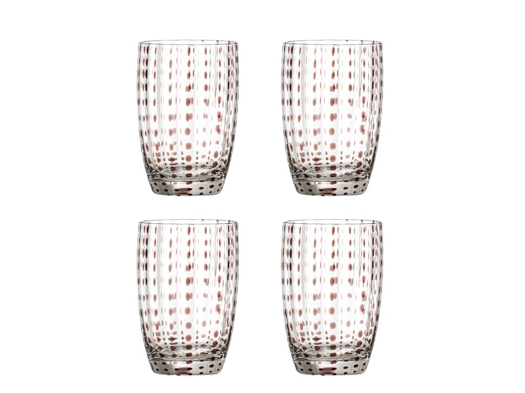 Sklenice Brinley od Bloomingville je vyrobena z ručně foukaného skla s tečkovanými linkami v odstínech hnědé. Sklenice se dodávají v sadě 4 kusů. Mohou se vyskytnout drobné nepravidelnosti, takže každá sklenice je jedinečná.Doplňkové parametry