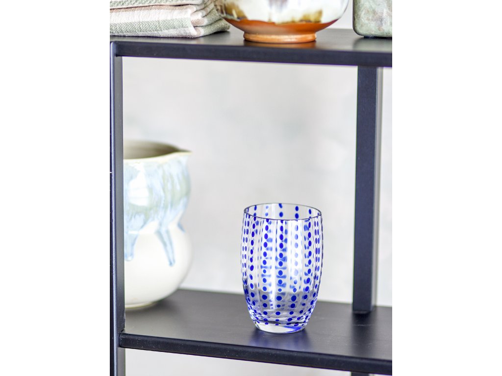 Sklenice Brinley od Bloomingville je vyrobena z ručně foukaného skla s tečkovanými linkami v odstínech modré. Sklenice se dodávají v sadě 4 kusů. Mohou se vyskytnout drobné nepravidelnosti, takže každá sklenice je jedinečná.Doplňkové parametry