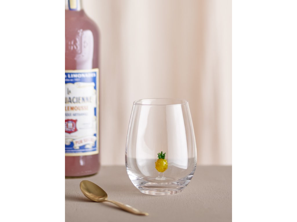 Sklenice Misa od Bloomingville dodá vašemu prostírání hravý a jedinečný nádech. Na dně sklenice je figurka ananasu, která designu dodává slavnostní a dekorativní detail. Každá sklenice se vyznačuje ručně foukanými a vyrobenými detaily, díky čemuž je každý kus jedinečný.Doplňkové parametry