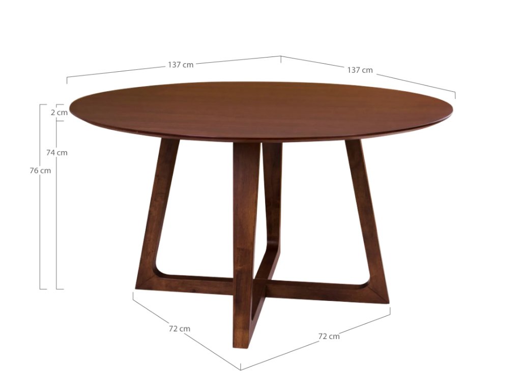 Hnědý kulatý jídelní stůl Hellerup s průměrem 137 cm je Elegantní a praktické řešení pro vaši jídelnu. Vyrobený z kvalitní kaštanové dýhy, která zajišťuje odolnost a krásný přirozený vzhled. Tento kulatý jídelní stůl Hellerup se skvěle hodí do moderních, rustikálních i skandinávských interiérů, kde přinese teplo a přirozenou eleganci.