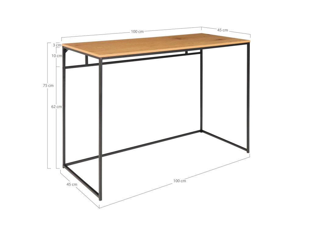 Psací stůl, černý, přírodní, dřevo/kov, 100x45x75 cm, Vita