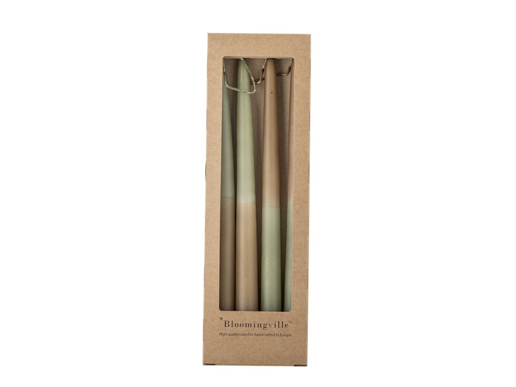 Svíčky Burma Candles od Bloomingville jsou sada 4 parafínových svíček v krásných zelených tónech. Každá svíčka je ručně vyrobená, je jedinečná a vytvoří ve vašem domově relaxační atmosféru a dodá útulný nádech každé příležitosti. Použijte je k vytvoření uklidňující atmosféry během útulných večerů nebo jako dekorativní detail ve vaší domácnosti.Doplňkové parametry