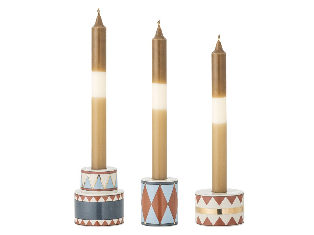Vícebarevný držák na svíčky, kamenina, 7,5x5/5,5x7/7,5x8,5 cm, sada 3 ks, Bitja