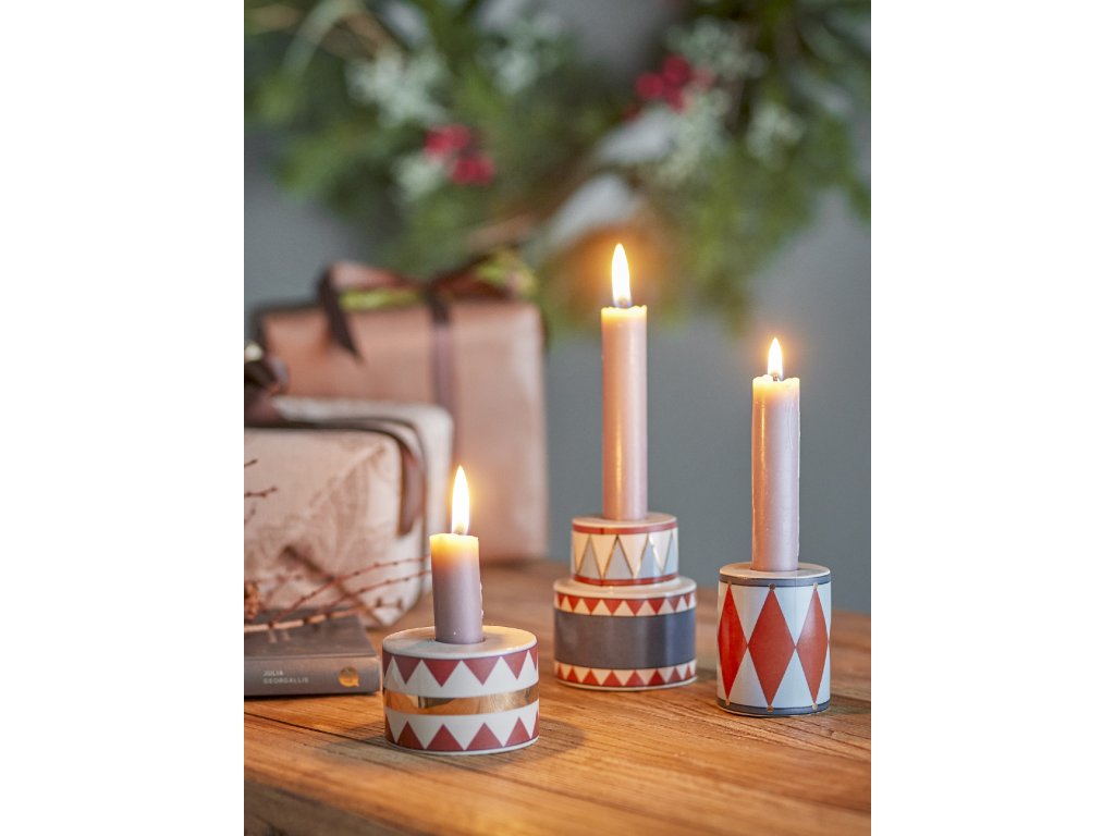 Svícny Bitja od Bloomingville, vyrobené z kameniny, jsou okouzlující sadou tří kusů, každý ve tvaru bubnu a zdobený slavnostními vzory. Tyto svícny vnesou do každého domova útulnou vánoční atmosféru a jsou ideální pro šíření světla a radosti během svátečního období.Doplňkové parametry