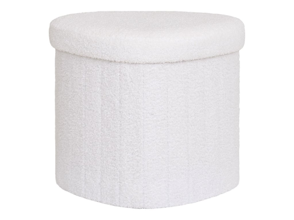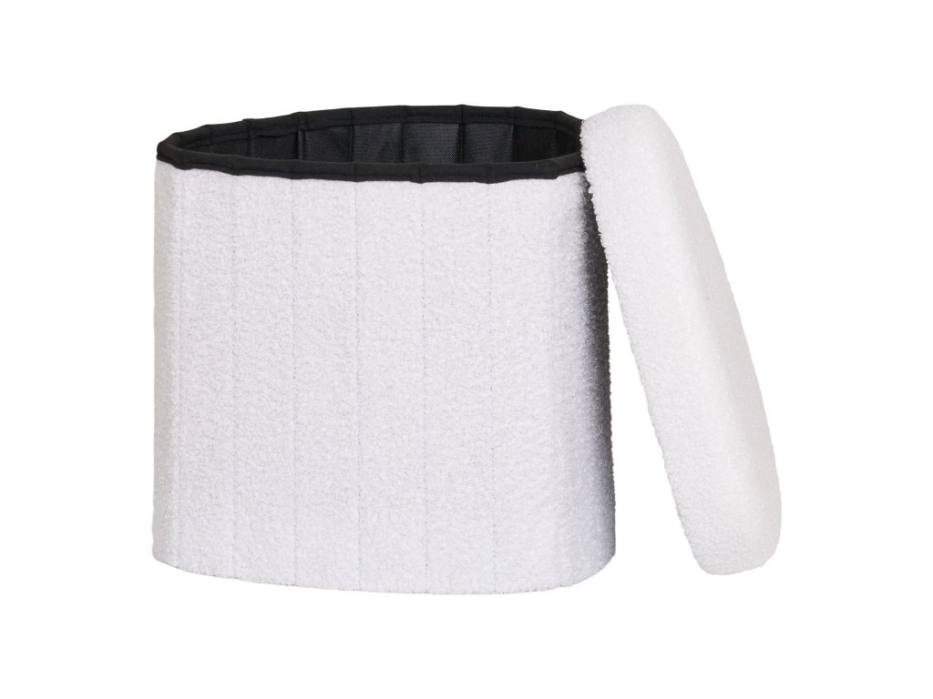 Taburet s úložným prostorem, bouclé, bílý, 42 x36 cm, Medford