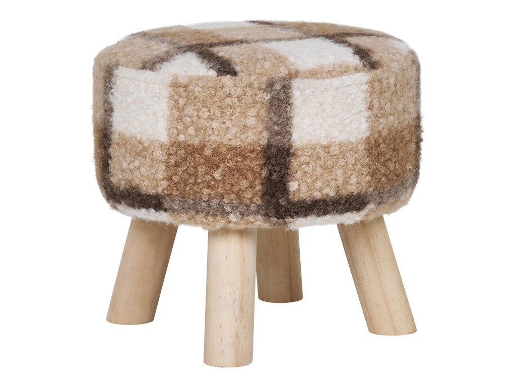 Taburet z textilie bouclé, hnědá/ béžová, ø31x29 cm, Aberdeen