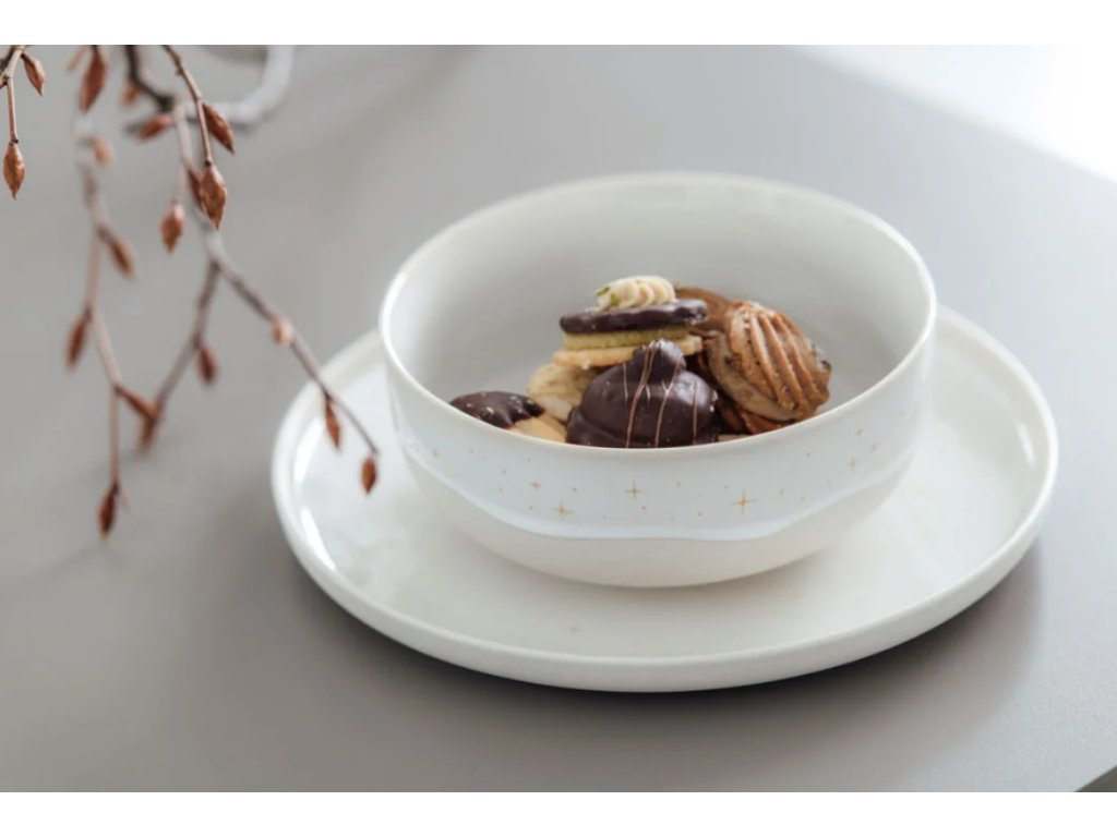 Dezertní talíř z kolekce Winter Glow kombinuje jemné dekorativní prvky se speciální efektní glazurou, která vytváří strukturu podobnou polevě nebo čerstvému sněhu. Každý kus je díky tomu jedinečný a ideální pro zimní stolování.