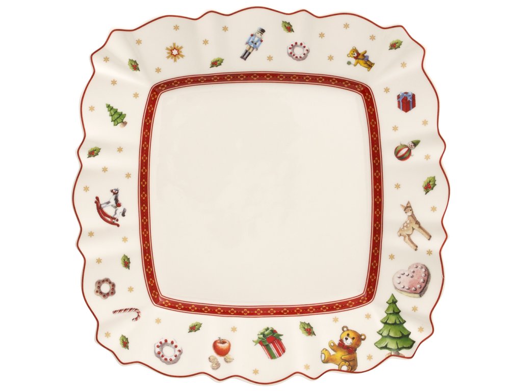 Čtvercový dezertní talíř o rozměrech 22 × 22 cm je ideální pro cukroví, zákusky i drobné pochutiny. Vynikne samostatně i jako součást kompletního vánočního servisu.