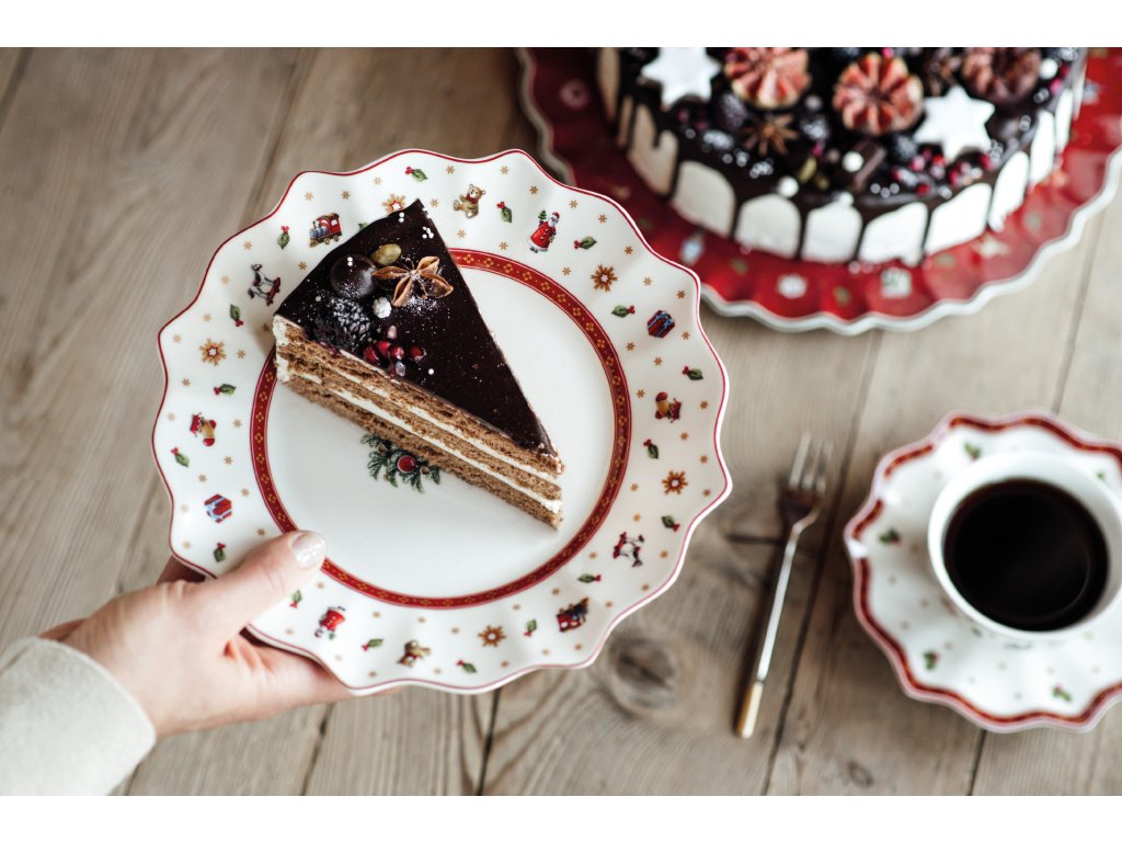 Tento porcelánový dezertní talíř je ideální volbou pro sváteční chvíle i zimní sezónu. Vynikne samostatně svou jemnou elegancí, nebo v kombinaci s červenými a zelenými kousky z klasické verze Toy’s Delight vytvoří dokonale vyvážený vánoční servis.