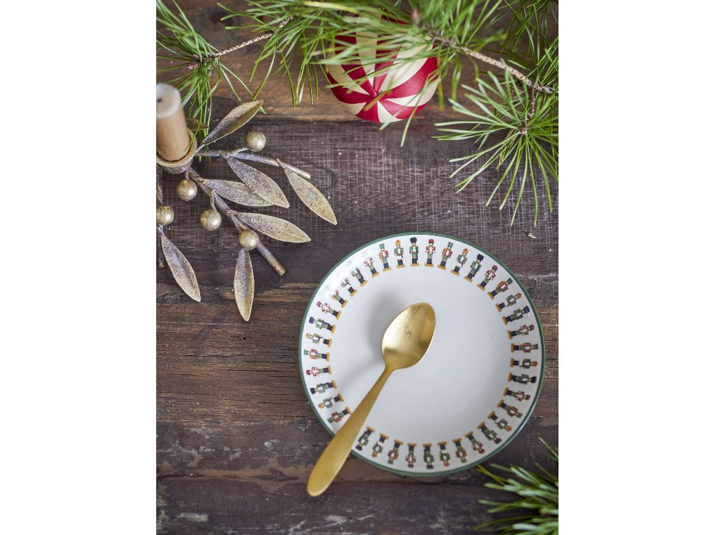 Talíř Jolly od Bloomingville je okouzlující dezertní talíř se slavnostním potiskem louskáčků. Jemné detaily a barevné motivy dodávají prostírání hravý a atmosférický nádech, zatímco zelený, ručně malovaný okraj zajišťuje, že každý talíř je jedinečný.Doplňkové parametry