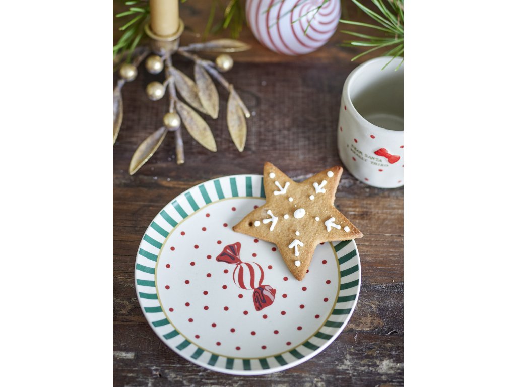 Talíř Yule Plate od Bloomingville je ideální pro sladké pokušení svátečního období. Díky stylovému designu se zelenými pruhy a okouzlujícím motivem červeného karamelu dodá tento talíř sváteční atmosféru každému stolu s dezerty. Je ideální pro servírování všeho, od vánočního cukroví až po vybraný dezert.Doplňkové parametry