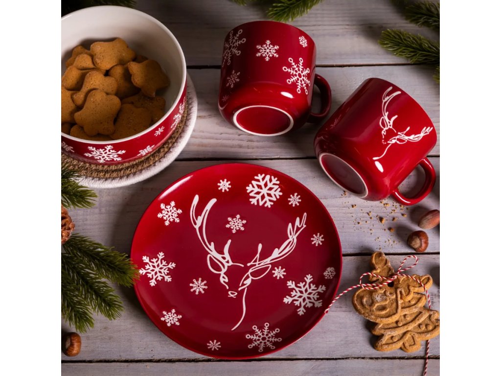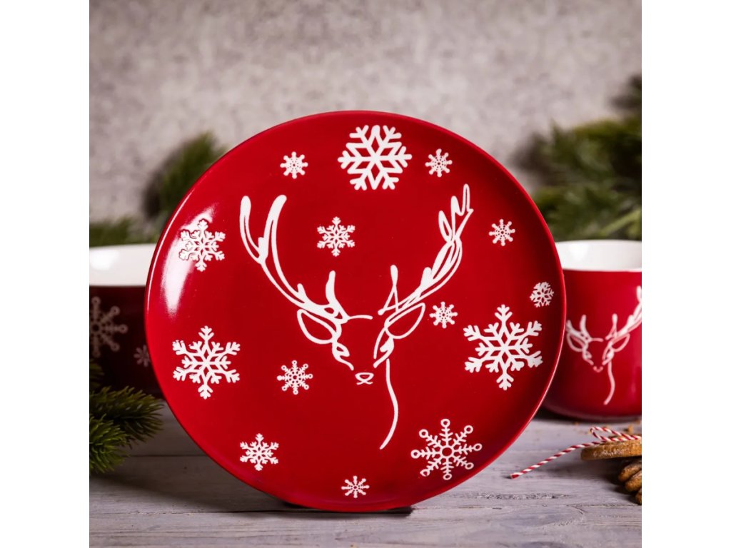 Dezertní talíř s jelenem, červený, 19 cm, Winter Dreams