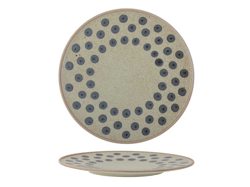 Talíř Tinni od Bloomingville je unikátní talíř vyrobený z přírodní kameniny. Má krásný vzor s ručně malovanými tečkami, a díky tomu bude mít každý kus speciální a odlišnou glazuru. Talíř je perfektním doplňkem vaší kuchyně, pokud hledáte něco, co je nejen funkční, ale i skvěle vypadá.Doplňkové parametry