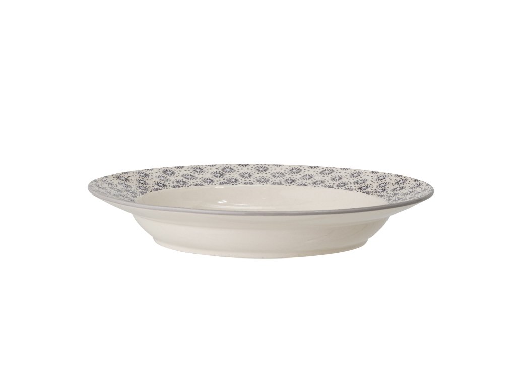 Talíř na těstoviny Elsa od Bloomingville má nový tvar, ideální na těstoviny nebo polévku. Ale nebojte se, neprozradíme vás, pokud si z něj dovolíte jíst i jiné pokrmy. Talíř na těstoviny Elsa je vyroben z kameniny s detailním šedým vzorem na okrajích, který krásně orámuje váš pokrm, ať už je to na večeři nebo na běžné menu. Objem 225 ml. Vhodné do myčky nádobí a mikrovlnné trouby.Doplňkové parametry