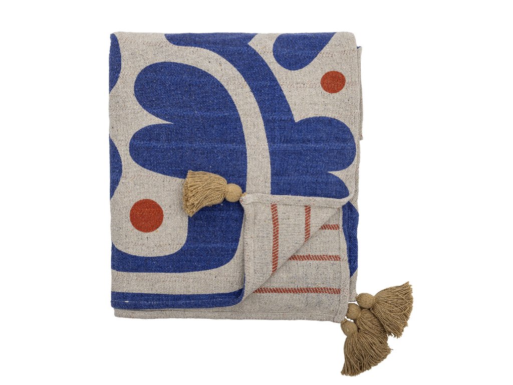 Přehoz Eviaya od Bloomingville je dekorativní přehoz se vzorem na každé straně. Přední strana má jemný vzor v modrých a červených tónech, který vytváří příjemný kontrast. Zadní strana je zdobena tkanými červenými pruhy. Každý roh je zdoben střapci ve žlutavé barvě. Přehoz je vyroben z recyklovaných materiálů a jeho měkká textura je ideální pro útulné chvíle na pohovce.Doplňkové parametry