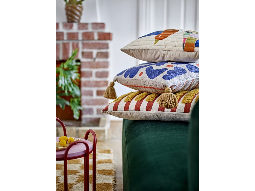 Polštář Lane od Bloomingville je vyroben z bavlny a zdobí ho grafický vzor v teplých, kontrastních barvách. Polštář je zdoben dekorativními svislými třásněmi ve žluté prošívané struktuře, které mu dodávají hravý a hmatový vzhled.Doplňkové parametry