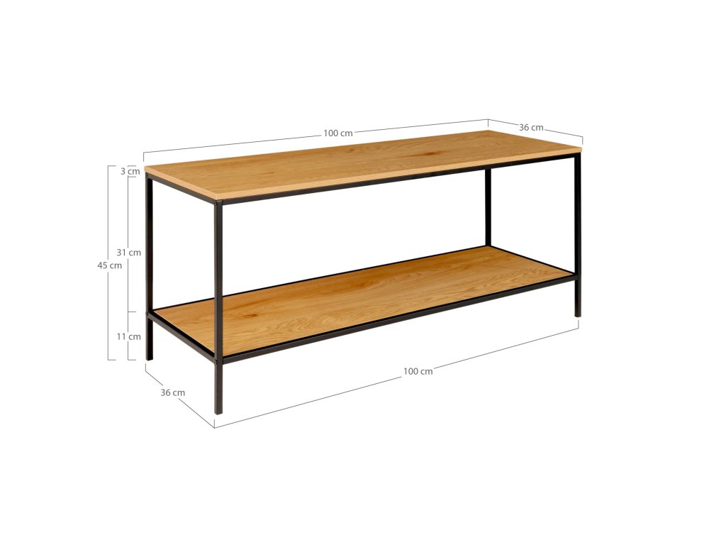 TV stolek, 2 police, přírodní/ černý, 100x36x45 cm, Vita