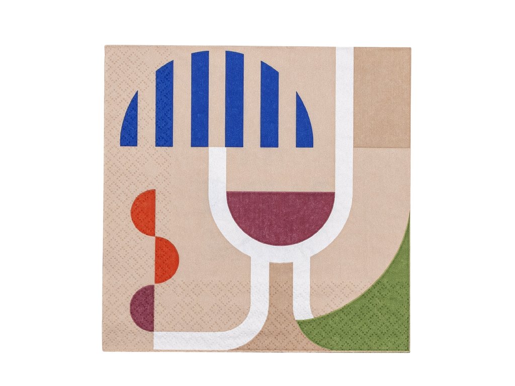 Ubrousek s motivem vína od Bloomingville je oboustranný. Na jedné straně je hravý, abstraktní motiv v pastelových barvách, zatímco na druhé straně je citát, který dodává prostírání ležérní a zábavný nádech.Doplňkové parametry