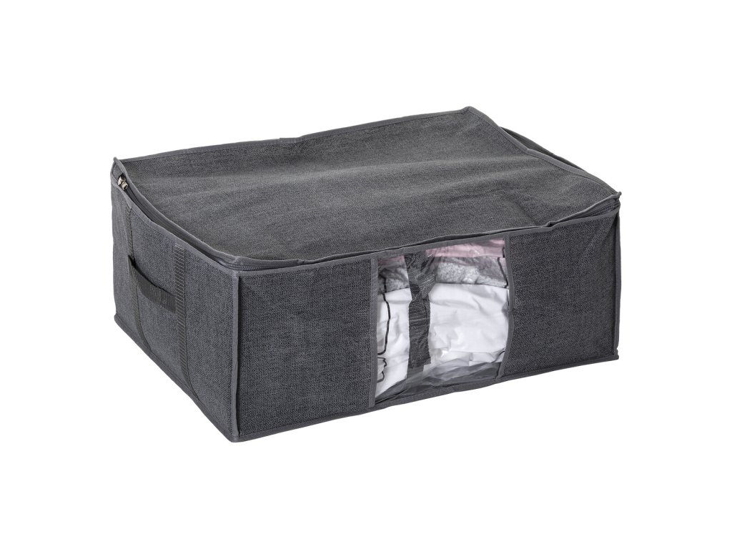 - Efektivní uskladnění: Šedý úložný box z polyesteru o rozměrech 60 x 45 x 25 cm pro uskladnění sezónního oblečení a uvolnění místa ve skříni.