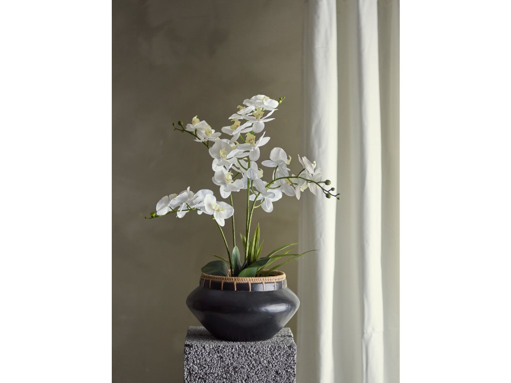 Umělá rostlina orchidej od Bloomingville je ztělesněním nadčasové krásy. Její bílé, půvabné květy se táhnou vzhůru a vytvářejí klasický i moderní vzhled zároveň. Orchidej je nenáročná, takže si můžete užívat jejího kvetoucího kouzla bez starostí o zalévání nebo péči. Dodává se s jednoduchým květináčem a je připravena k umístění do květináče, který doplní jak rostlinu, tak vaši dekoraci. Před použitím vytvarujte stonky/větve, abyste zdůraznili přirozený vzhled rostliny a přizpůsobili ji svému osobnímu dekoru.Doplňkové parametry