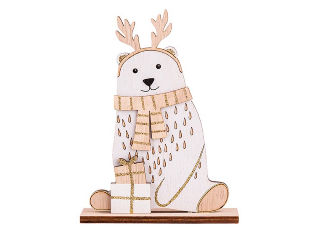 Dekorace dřevěný medvěd na podstavci je vyrobená z kvalitního dřeva. Tato dekorace rozjasní vaše dlouhé zimní večery a naladí tu správnou vánoční atmosféru.