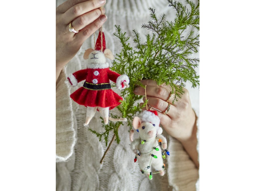 Vánoční ozdoba Peo od Bloomingville je oblíbeným neoklasicistním doplňkem vánočních dekorací. Malé myšky šíří radost, ať už jsou na větvích, klikách dveří nebo jako rozmarný detail na vánočních dárcích.