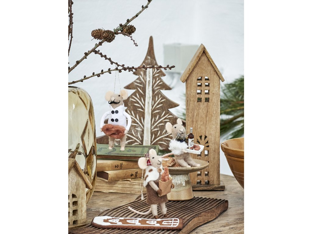 Vánoční ozdoba Peo od Bloomingville se třemi myškami z plstěné vlny s roztomilými detaily.