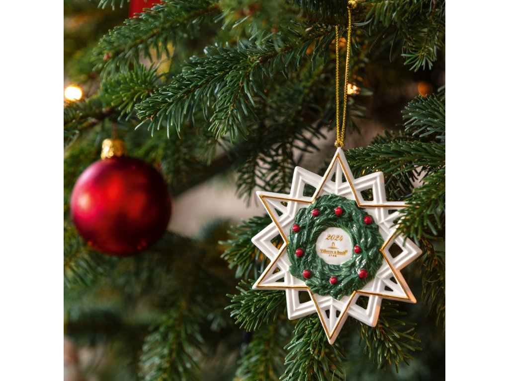 Kolekce Christmas Classics od Villeroy & Boch staví na čistém bílém porcelánu, bohatých vánočních barvách a decentních zlatých prvcích. Ozdoba Hvězda vypadá skvěle samostatně i ve dvojici (např. s motivem stromečku či boty), takže snadno vytvoříš ucelenou sadu na stromek nebo sváteční větev.