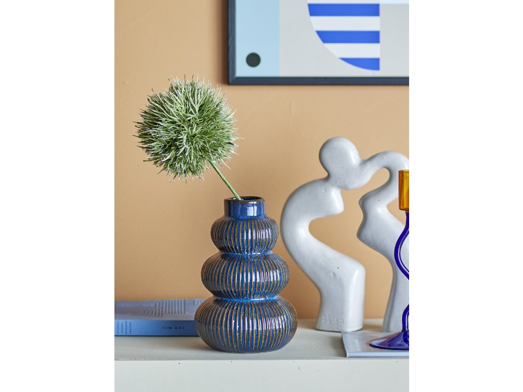 Váza Myrtle od Bloomingville upoutá pozornost svým harmonickým tvarem, který vytváří hloubku. Váza je potažena bohatou modrou glazurou a zdobena svislými pruhy. Povaha glazury může vést k barevným odchylkám.Doplňkové parametry