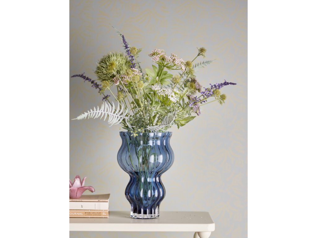 Váza Zanna od Bloomingville je vyrobena ze skla v krásném modrém odstínu. Váza má organický tvar, který zdůrazňuje mnoho jemných detailů. Je ideální pro vystavení krásné kytice nebo jako samostatný dekorativní detail.Doplňkové parametry