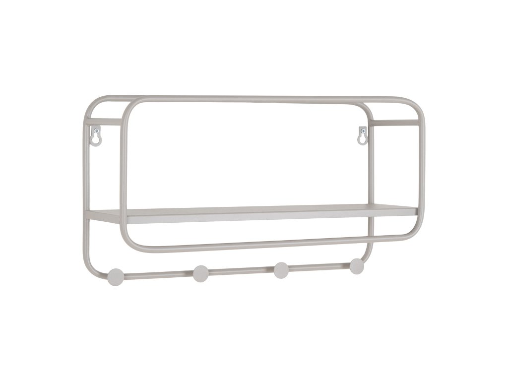 Stylová a funkční kovová police v jemné světle šedé barvě pro uspořádání dekorací, knih nebo drobností. Elegantní design a pevná konstrukce ji činí ideální do obývacího pokoje, kuchyně nebo kanceláře.