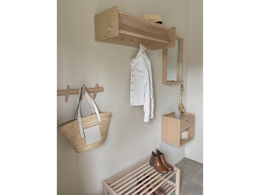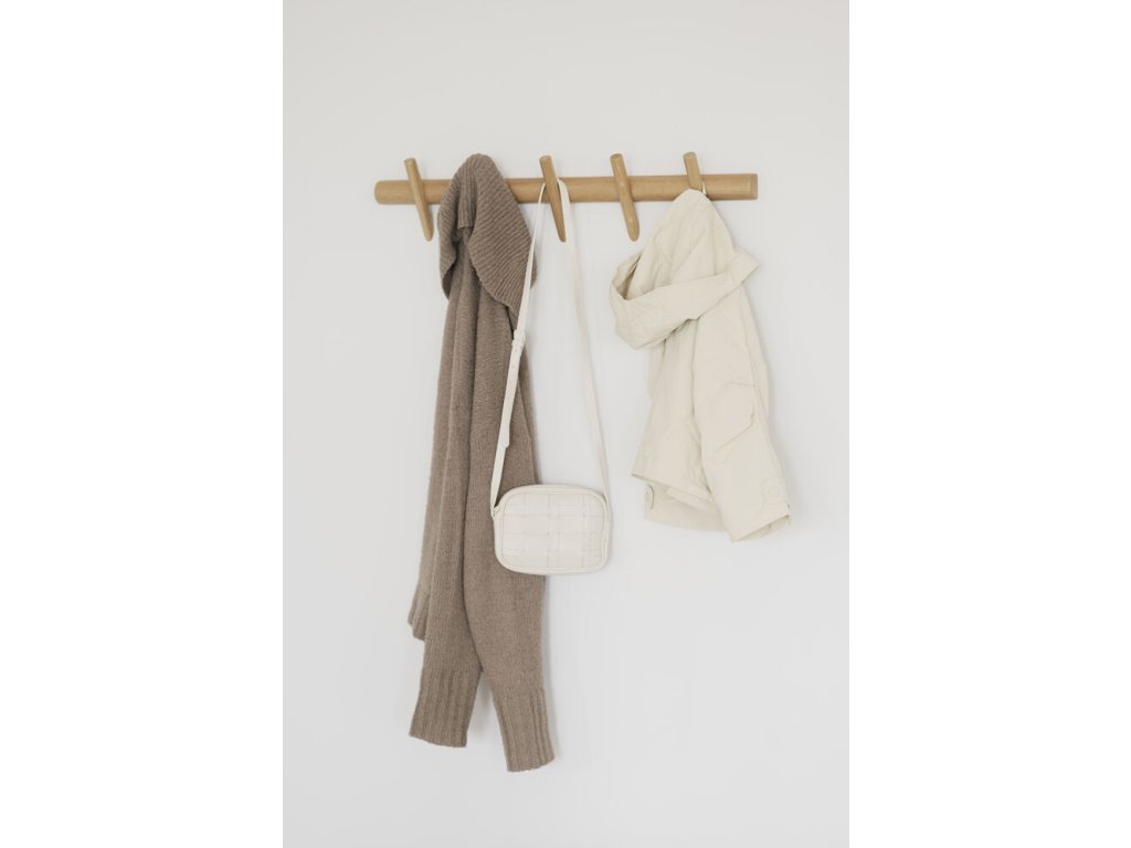 Věšák Hillmond 65 cm od Rowico je stylový a funkční nástěnný věšák vyrobený z masivního dubu, dostupný v provedení lakovaný přírodní dub nebo lakovaný bělený dub. Díky pěti pevným háčkům nabízí praktický způsob, jak udržet pořádek v předsíni, ložnici nebo šatně.