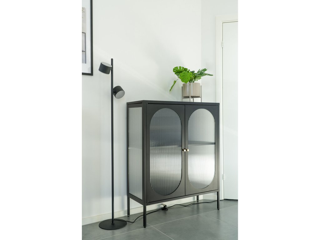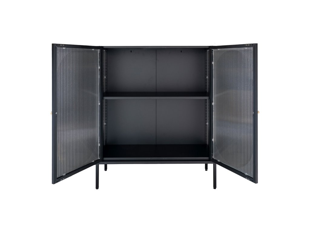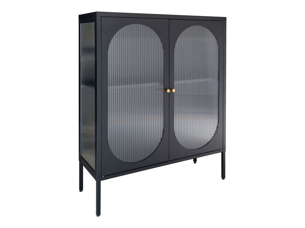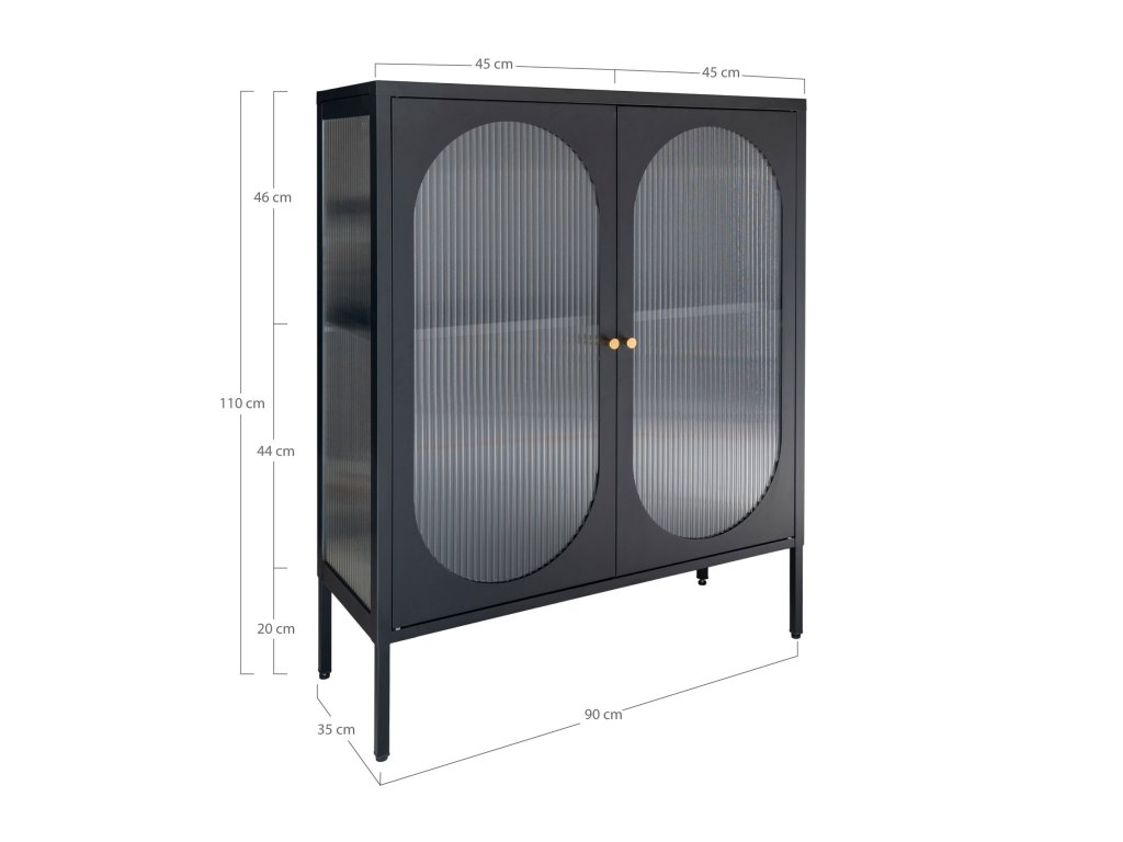 Černá vitrína se skleněnými dvířky, kov, 90x35x110 cm, Adelaide