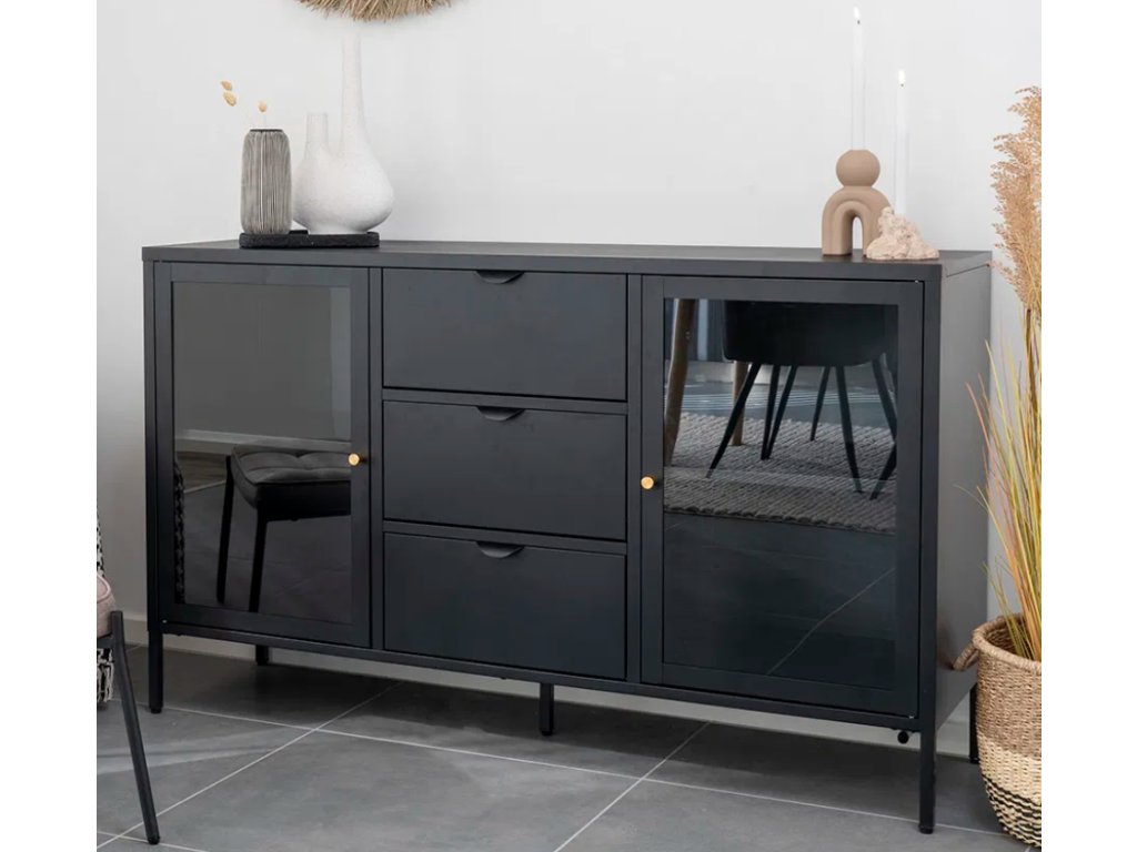 Moderní kovová komoda v černé barvě o rozměrech 140×40×85 cm Dalby nabízí stylové a pevné úložné řešení. Ideální do obývacího pokoje, pracovny nebo předsíně, kde poslouží pro skladování a organizaci vašich věcí. Elegantní industriální design a odolný materiál dodají prostoru moderní vzhled a praktičnost.