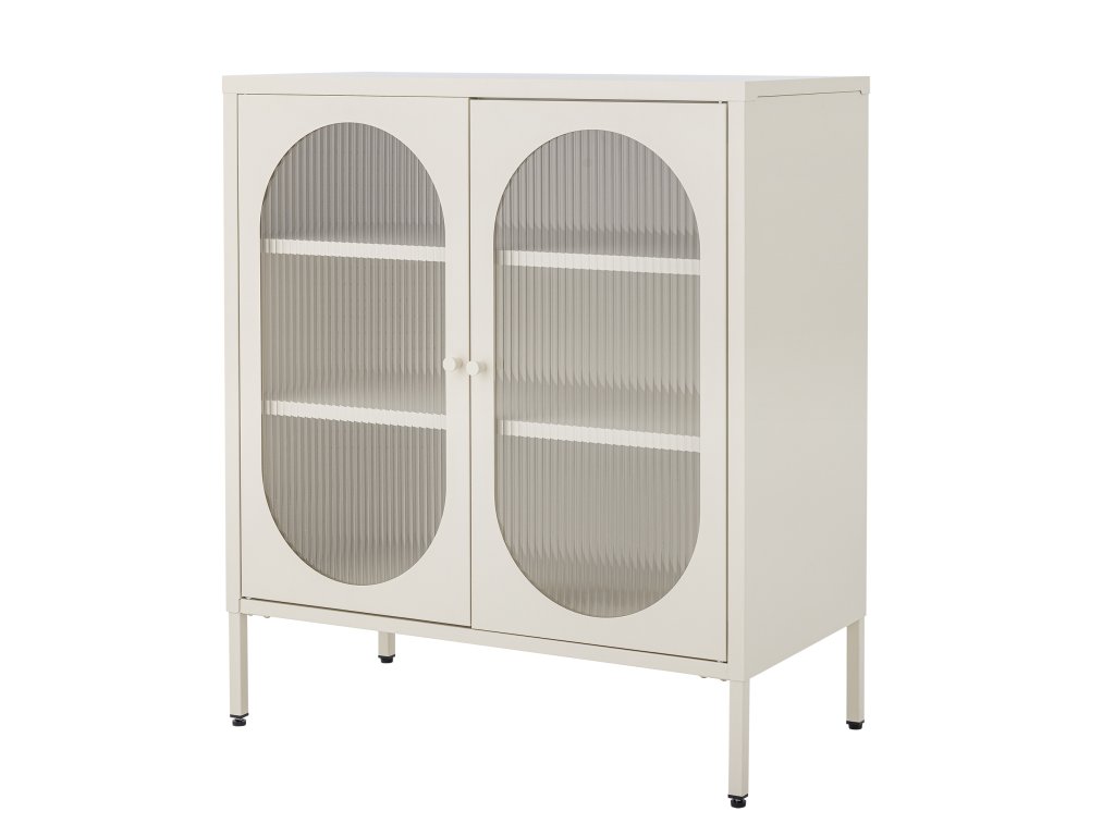 Skříňka Salvo od Bloomingville je krásná kovová skříňka v jemné pískové barvě, která dodá eleganci každé místnosti. Dvojí dvířka skříňky se vyznačují dekorativními detaily z žebrovaného skla. Díky praktickým poličkám je tato skříňka ideální jak pro ukládání, tak pro vystavení věcí a perfektně se přehozí do obývacího pokoje, jídelny nebo vstupní haly.Doplňkové parametry
