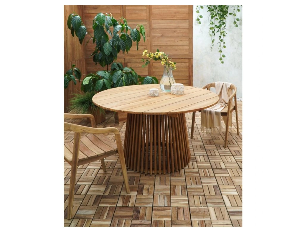 Kulatý zahradní stůl Lorca je elegantní a praktický kus nábytku určený pro venkovní použití. Jeho průměr činí 120 cm, což poskytuje dostatek prostoru pro pohodlné sezení celé rodiny nebo přátel. Vyroben je z odolného teakového dřeva, které se vyznačuje vysokou tvrdostí a přirozenou odolností vůči povětrnostním vlivům.