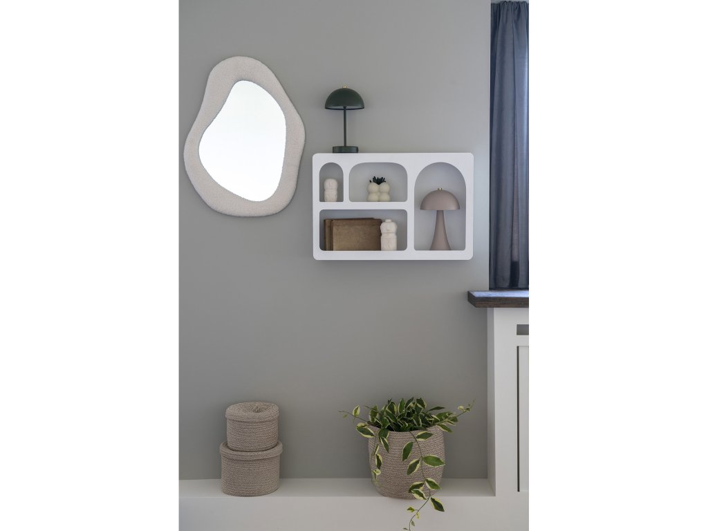 Bílé zrcadlo s atypickým tvarem o rozměrech 46,5x61 cm, Bosa, je skvělé do moderních, minimalistických nebo eklektických interiérů. Vhodné do koupelen, ložnic nebo do vstupních prostor, kde působí svěže a přátelsky, a zároveň opticky zvětšuje místnost.