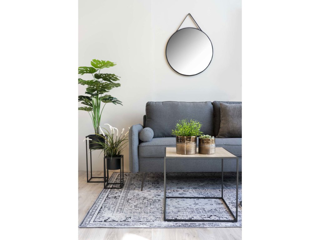 Nástěnné kulaté zrcadlo s ocelovým rámem a prvky z umělé kůže v černé barvě, s průměrem 60 cm, Trapani, přidává do prostoru moderní a elegantní nádech. Jeho jednoduchý design a kontrastní materiály jsou ideální do contemporary nebo industriálních interiérů, například do předsíní, obývacích pokojů nebo ložnic, kde slouží jako stylový dekorativní prvek i praktický zrcadlový bod.